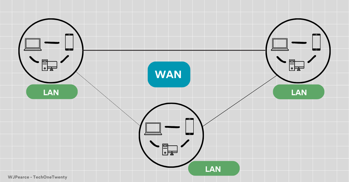WAN (Wide Area Network): A network that spans a large geographical area, often composed of multiple LANs. The internet is the largest WAN.