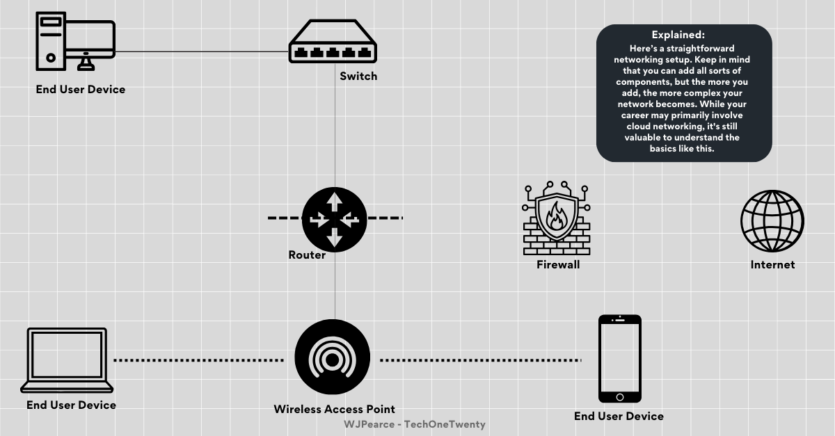 Chances are you already have a picture in your head of what computer networking is. To put it simply, it’s the practice of connecting computers and other devices to share resources and information. You can introduce hardware into your network (like routers, switches, and cables) and software (such as network protocols and operating systems) to enable communication between devices. Networks can range from small home setups (Your router to your phone) to vast global systems like the Internet, allowing devices to share data, access remote resources, and talk to each other.