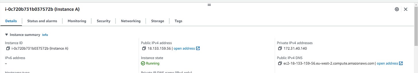 Ping 172.31.38.10Congrats 🎉 Instance A and Instance B can now communicate!