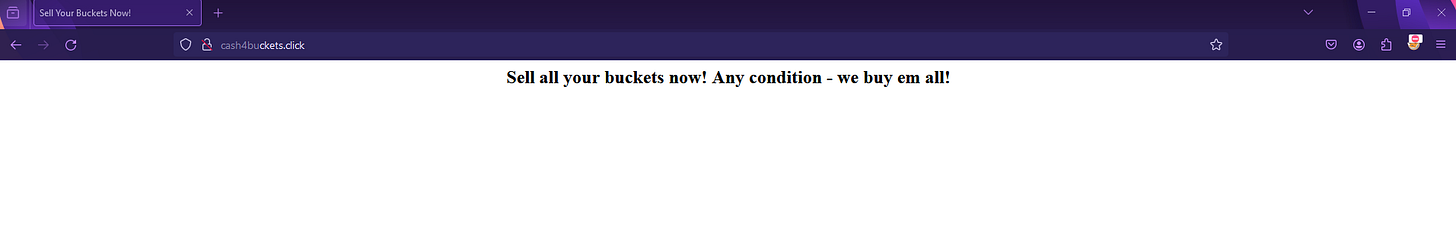 Almost there! We’ve just got to redirect cash4buckets.click to our S3 bucket.