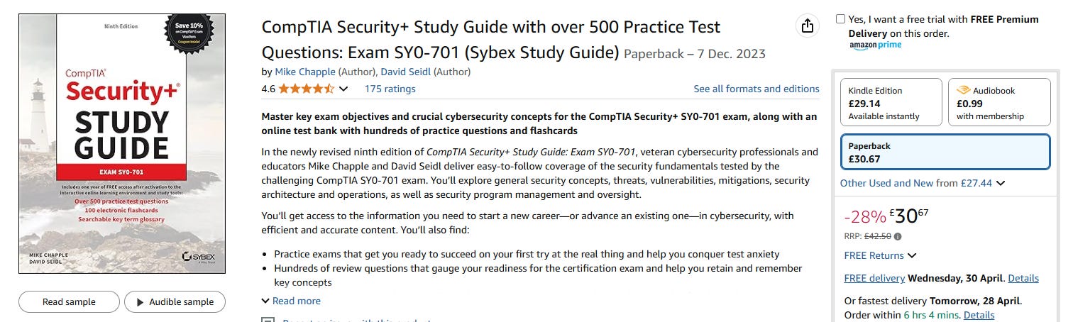 I want to give something back, Iโm going to pick one reader at random to send a copy of the CompTIA Security+ Study Guide: