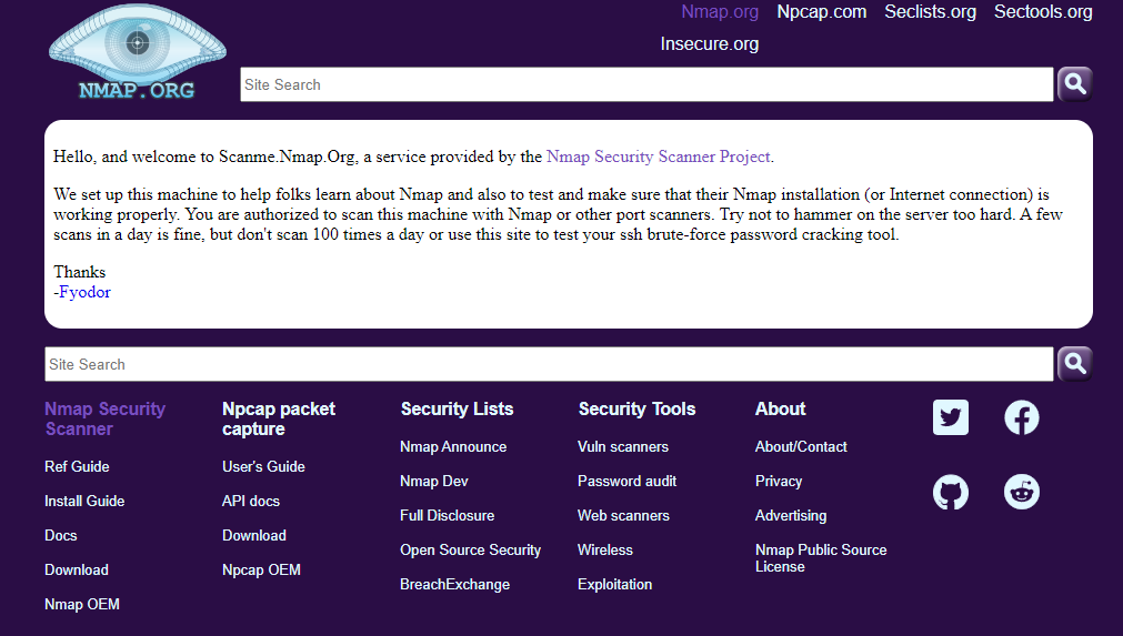 The NMAP Security Scanner actually host a server for you to legally practice on: