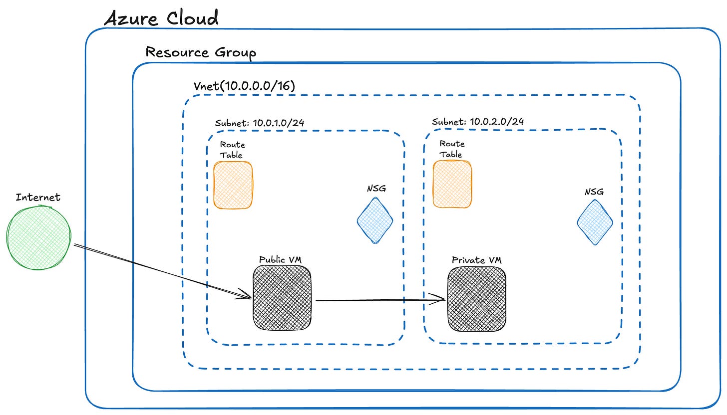 Azure makes secure VM access simple with SSH keys. In this setup, you’ll use a jump box, a VM in your public subnet, to connect to a private VM that has no public IP. This is a great hands on alternative to managed solutions like Azure Bastion, which lets you connect to private VMs directly through the portal (recommended for production). But here, we’ll walk through doing it manually, a great way to understand how things work under the hood.