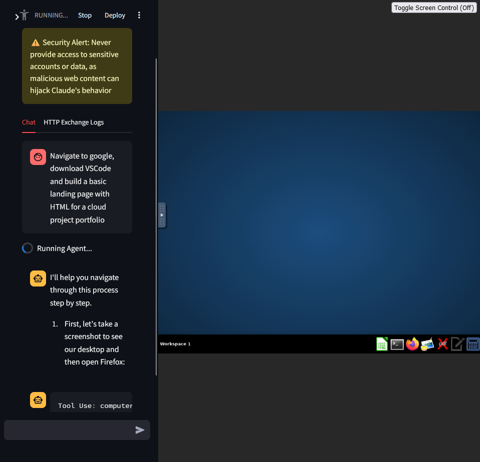 Here’s the end goal, a traditional AI Chat prompt on the left and a Virtual Environment for Claude to use on the right: