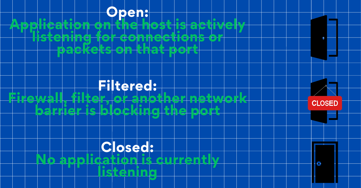 NMAP really comes alive when we have selected a Host to scan. This scan will return the port number and protocol, service name, and state. The state and the output generated by NMAP include a list of scanned targets along with additional details based on the chosen options. A crucial part of this output is the "interesting ports table," which provides the port number and protocol, service name, and state. The state can be open, filtered or closed.